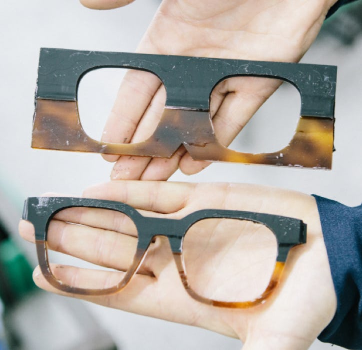 After our acetate is cut into frame fronts using a high-tech CNC machine, it’s tumbled with wood chips and polished for seven days.